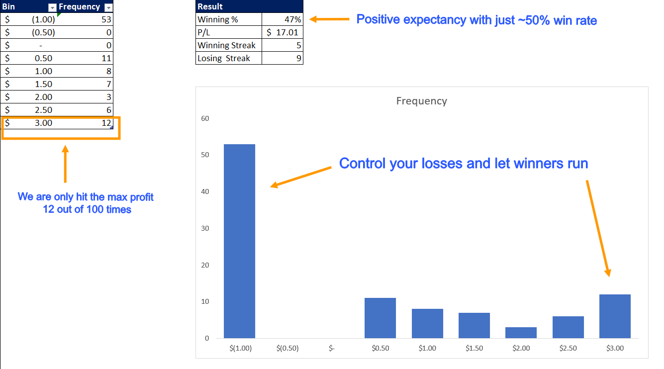 With a 50% win rate: You're profitable even with random entries.